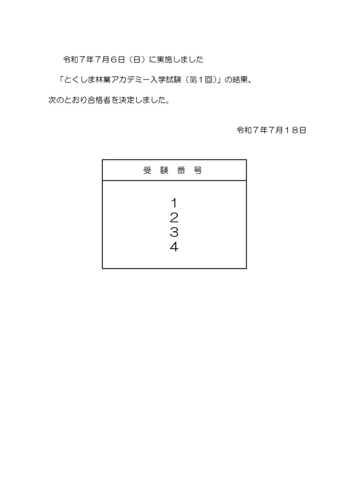 《令和8年度》第1回入学試験結果 合格者 2025 7/18 おしらせ 2025年7月18日 おしらせ シェアはこちらから! URLをコピーしました! とくしま林業アカデミー【公式】チャンネル新動画公開!【Youtube】 【ハローワーク鳴門】令和7年度 林業就職支援セミナー 開催日程一覧 関連記事 《令和8年度》第3回入学試験結果 合格者 2025年12月16日 《令和8年度》第2回入学試験結果 合格者 2025年9月16日 【ハローワーク鳴門】令和7年度 林業就職支援セミナー 開催日程一覧 2025年8月14日 とくしま林業アカデミー【公式】チャンネル新動画公開!【Youtube】 2023年10月24日 《過去の動画はこちら》とくしま林業アカデミー【公式】チャンネル動画一覧【Youtube】 2022年6月21日
