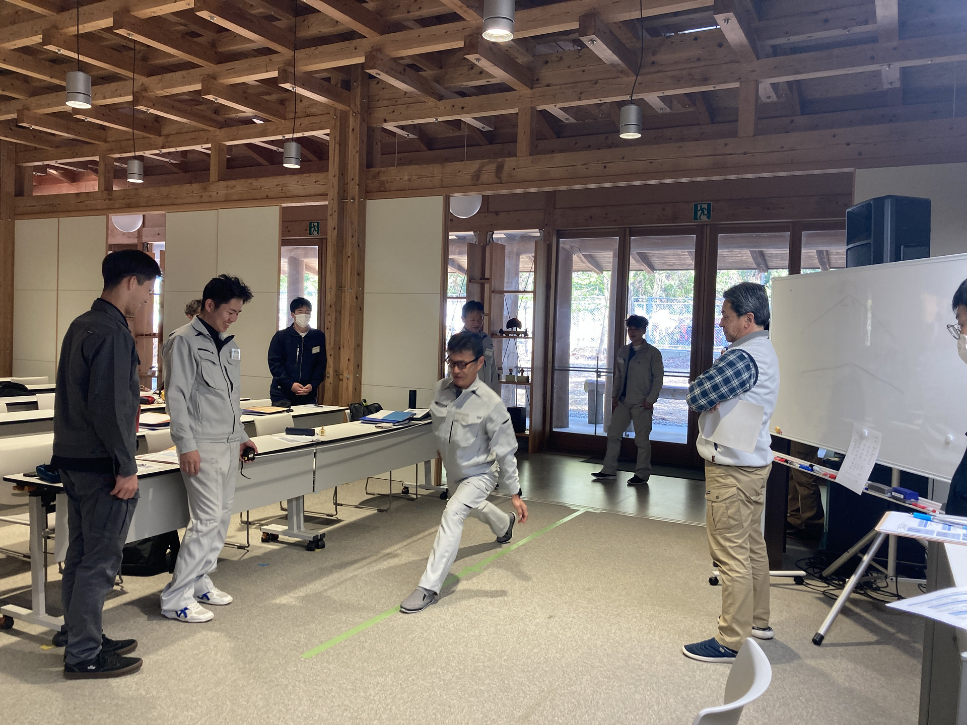 この資料は、主に高年齢労働者対策として使用されるものです。しかしながら、林業の作業現場は山の急斜面など足元に十分留意しなければいけないことが多く、身体機能に対する自己評価と実際に体を動かして測定した結果との乖離度合いを認識することは、年齢にかかわらず全研修生にとって非常に重要と考えています。